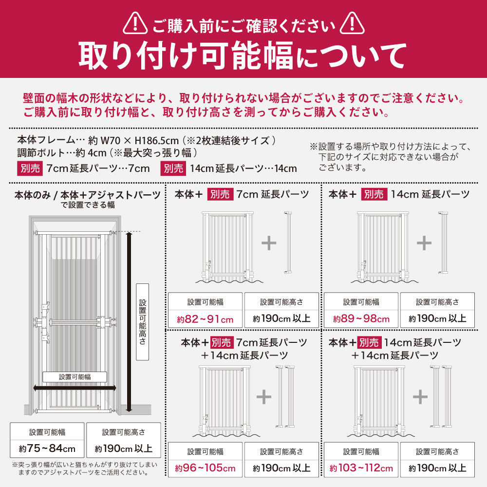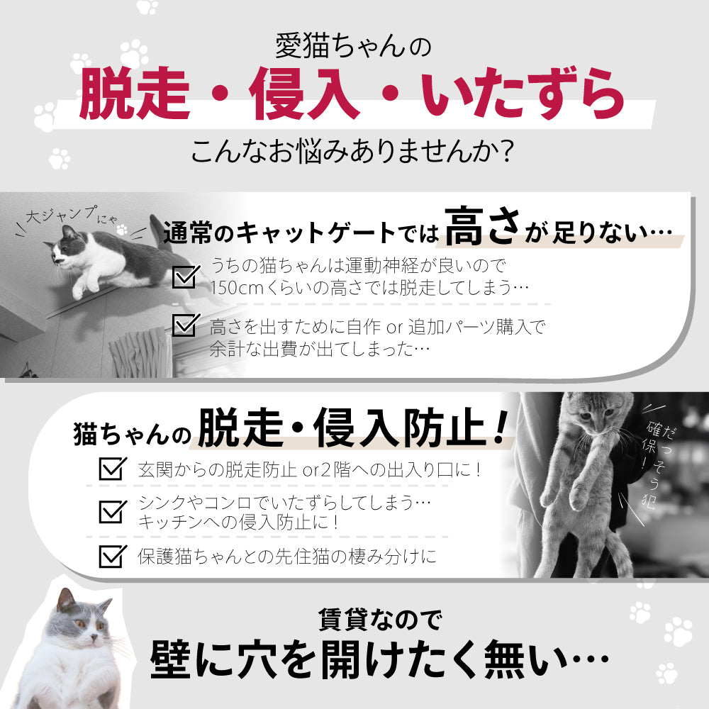 高さ186.5cm 猫 ゲート 脱走防止ゲート ハイタイプ ペットゲート ベビーゲート ネコ CATGATE 猫ゲート 柵 フェンス ぺットフェンス 広い ワイド 突っ張り